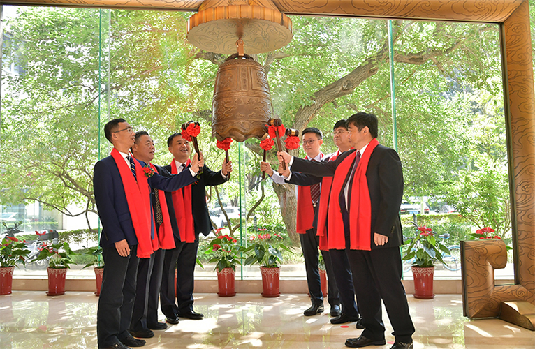 ▲廣西壯族自治區(qū)黨委軍民融合辦副主任楊京凱先生,桂林市委常委統(tǒng)戰(zhàn)部部長(zhǎng)王建毅先生,桂林市企業(yè)與企業(yè)家聯(lián)合會(huì)會(huì)長(zhǎng)劉康祿先生,桂林星辰科技股份有限公司董事長(zhǎng)、技術(shù)總監(jiān)呂虹先生,桂林星辰科技股份有限公司董事、總經(jīng)理馬鋒先生,東興證券股份有限公司副總經(jīng)理張軍先生共同敲響開(kāi)市寶鐘。