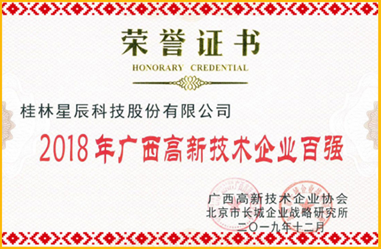 廣西高新技術(shù)企業(yè)協(xié)會(huì)發(fā)布了2018年廣西高新技術(shù)企業(yè)百?gòu)?qiáng)名單,桂林星辰科技股份有限公司榮幸入選該名單中。由廣西科技廳、財(cái)政廳及國(guó)家稅務(wù)總局廣西稅務(wù)局等部門領(lǐng)導(dǎo)為上榜企業(yè)代表授牌。此次星辰科技能夠入選廣西高新技術(shù)企業(yè)百?gòu)?qiáng)榜單,不僅是自治區(qū)各部門對(duì)星辰科技自主創(chuàng)新能力的認(rèn)可,也是給予本企業(yè)未來(lái)發(fā)展方向更高的指引。