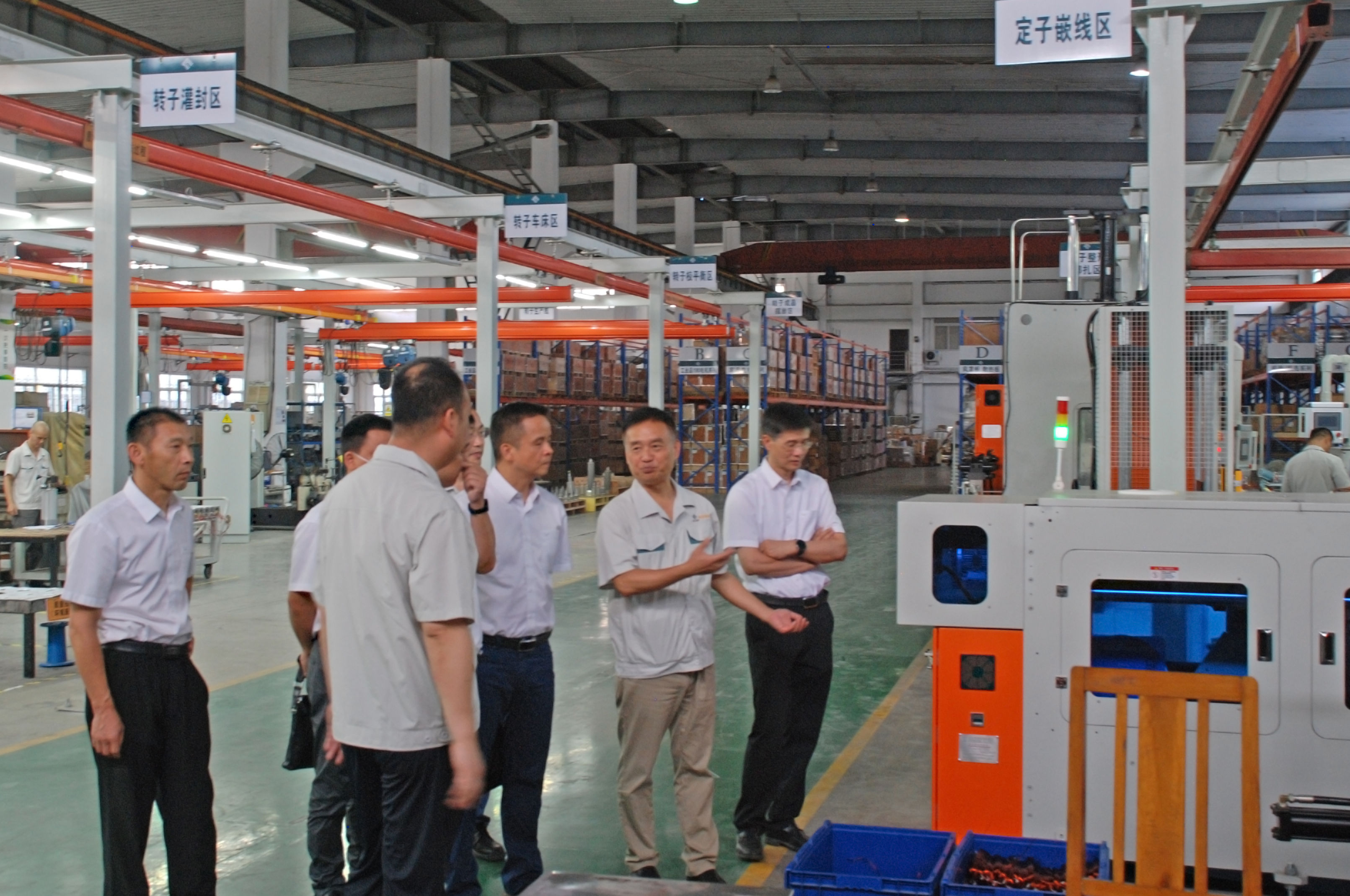 廣西汽車集團(tuán)副總裁陳曉峰一行還參觀了我司電機生產(chǎn)車間和電氣生產(chǎn)車間,馬鋒總經(jīng)理詳細(xì)介紹了公司的生產(chǎn)線、關(guān)鍵設(shè)備、工藝控制、質(zhì)量控制及產(chǎn)能等情況。