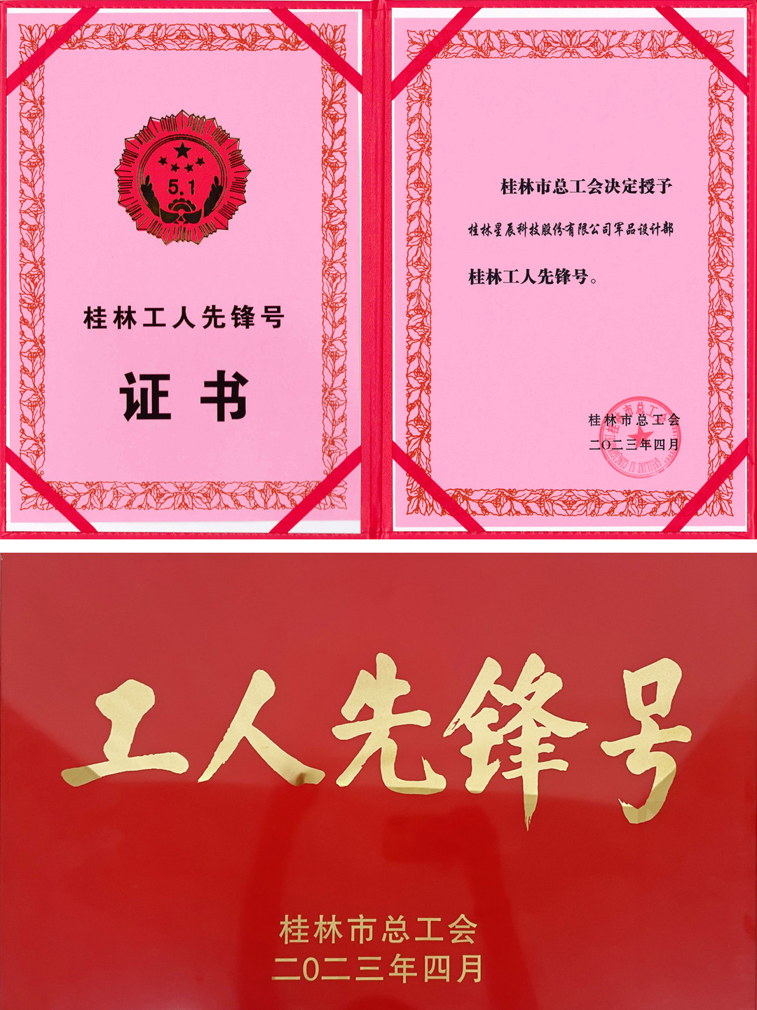 近日,廣西壯族自治區(qū)總工會對2023年廣西五一勞動獎和廣西工人先鋒號進行表彰,桂林星辰科技股份有限公司董事會辦公室榜上有名,榮獲廣西工人先鋒號稱號。與此同時,公司軍品設計部也獲得由桂林市總工會頒發(fā)的桂林市工人先鋒號榮譽稱號。獲得此項殊榮,既是自治區(qū)總工會、桂林市總工會對星辰科技的認可,也是對星辰員工愛崗敬業(yè)、拼搏奉獻、竭誠服務的激勵。